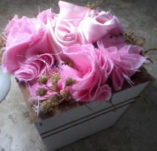 Cachepot com flores em voil de cetim