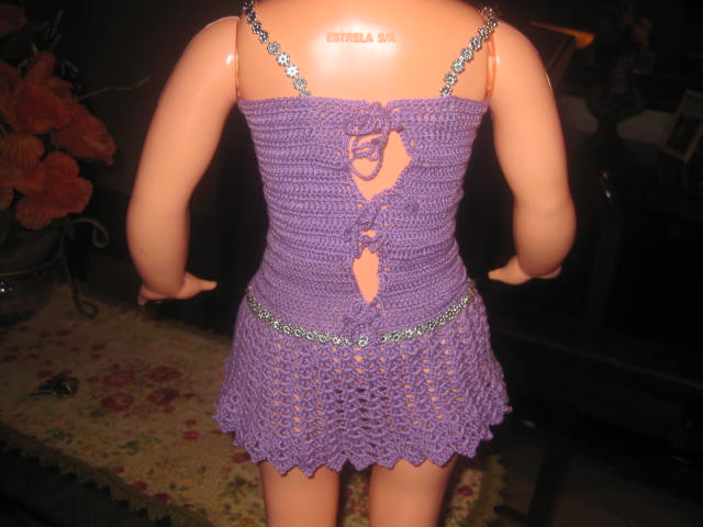 Bem,esse início foi para postar um trabalho de croche que surgiu por acaso e que me deixou feliz com o resultado.Foi uma encomenda de uma prima,uma roupa para boneca,e não é que consegui criar????Ficou muito fofa,espero que gostem